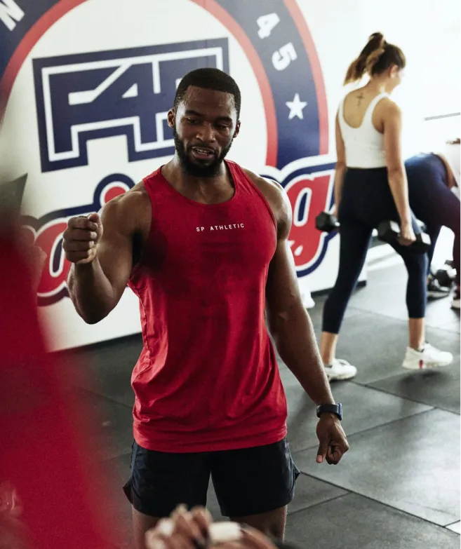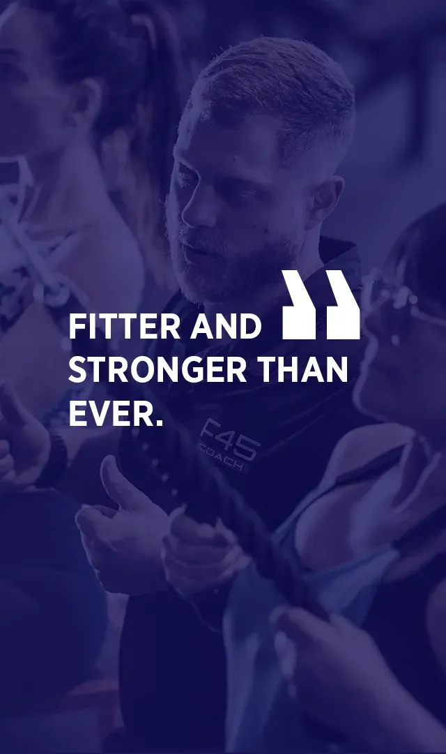 The F stands for functional training, a mix of circuit and HIIT style workouts geared towards everyday movement. 45 is the total amount of time for sweat-dripping, heart-pumping fun!
